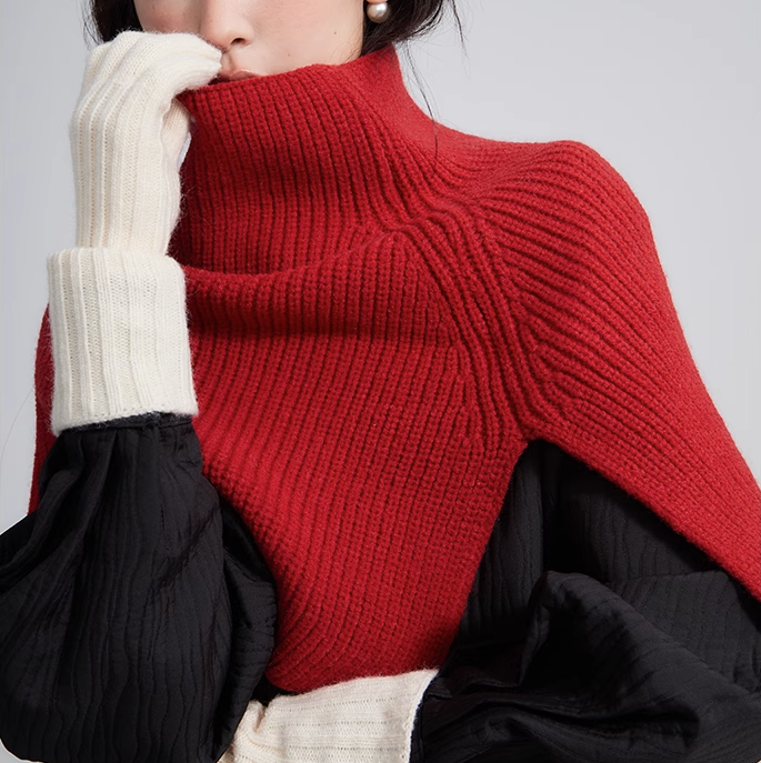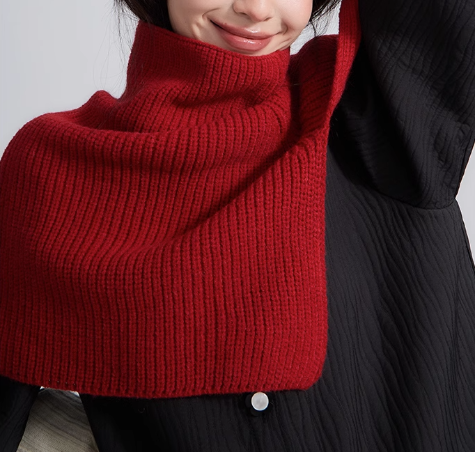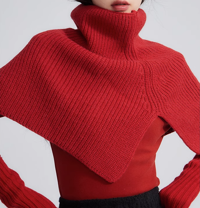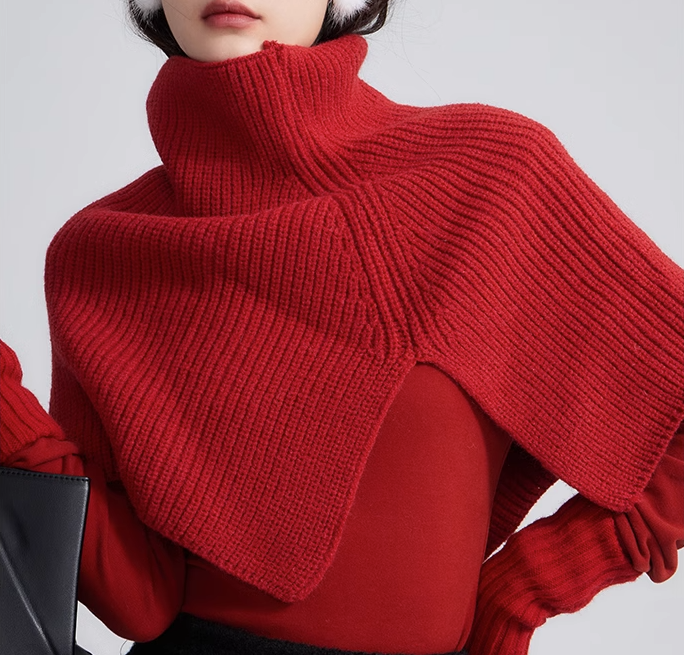Model: Windproof and warm one-piece slit turtleneck knitted shawl scarf